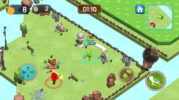 3、控制各种可爱的小人儿拿起不同的武器进行战斗,无论哪种角色都能免费使用。