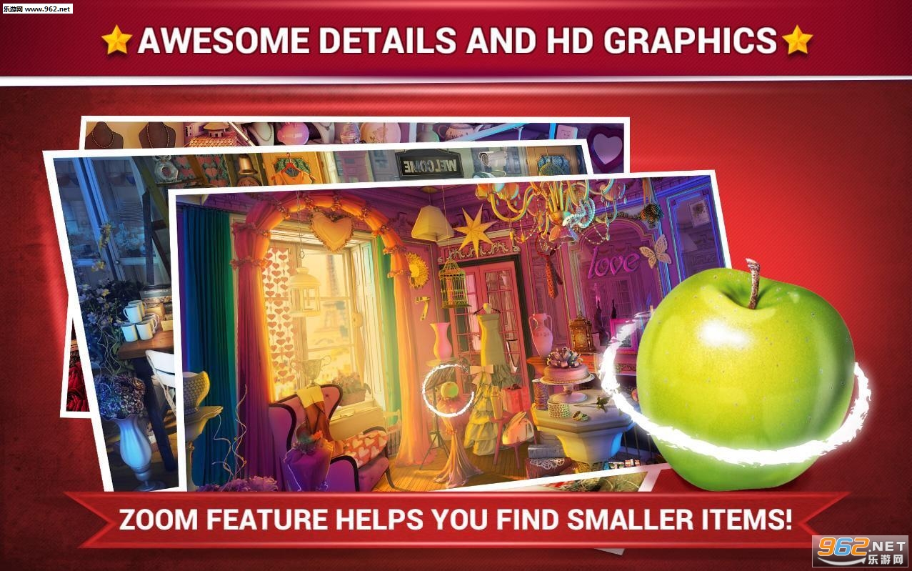 《隐藏的对象爱游戏安卓版》是一款找不同的休闲游戏,玩家在游戏中寻找照片中所有隐藏的对象,比如花或者项链,游戏充满浪漫的旋律100%的反无聊,快来下载试试吧!
