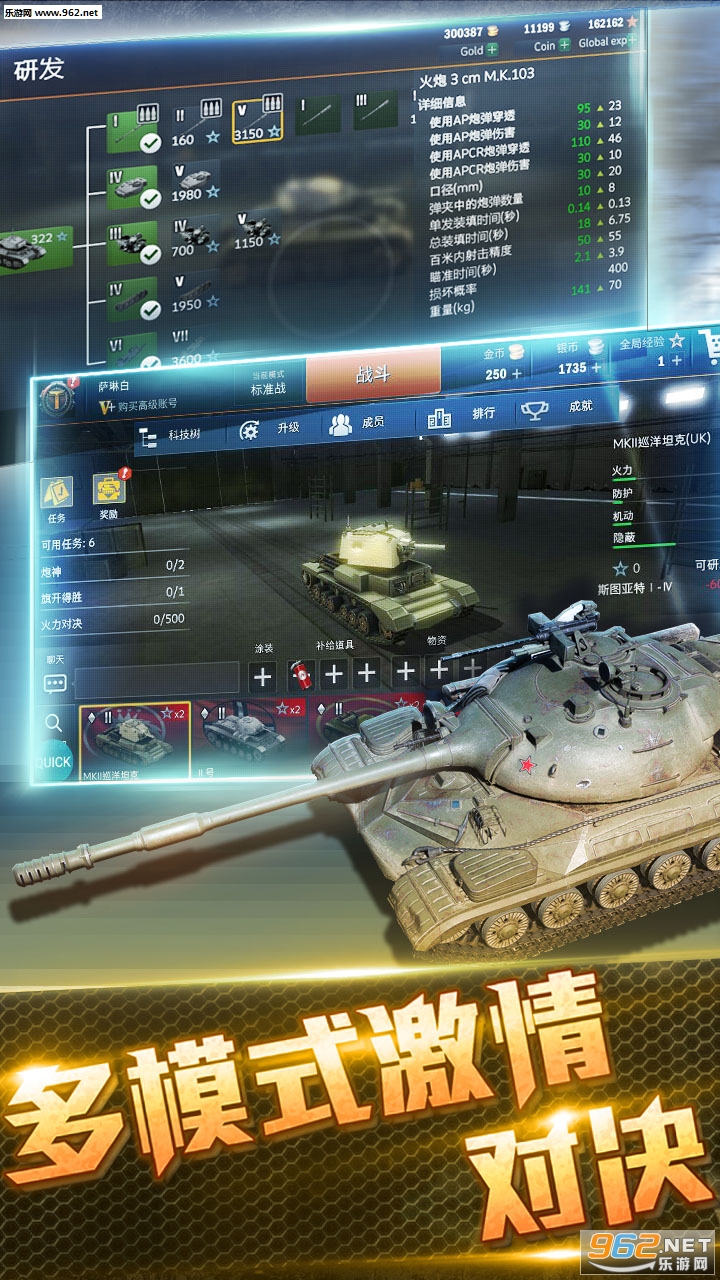4个坦克系:德、英、苏、美,近百辆二战经典坦克。