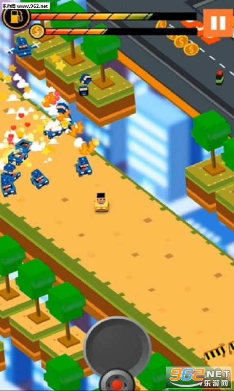 《极速大逃亡安卓版》是一款逗趣欢脱的竞速游戏,游戏采用可爱的方头人物形象作为我们的游戏主角,诙谐搞笑,游戏的一开始就非常具有戏剧性,我们的主角跟它的同伙去抢劫银行,但是却被同伙抛下了,这下完了,现在主角需要在追上伙伴的同时还要摆脱警察的追捕,驾驶你的汽车,秀出你高超的技术,越过各种障碍,到达终点吧。