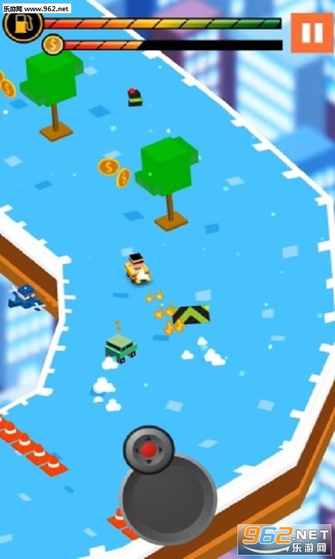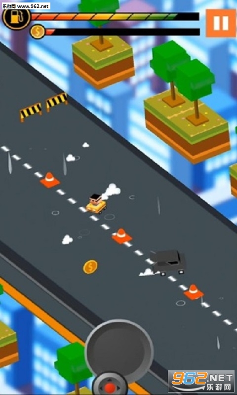 尽管控制方式让初上手者颇不习惯,但游戏本身难度不高,加上可爱风格的画面,很有娱乐性!别忘记,在飞车逃亡的途中,要拣汽油哦!