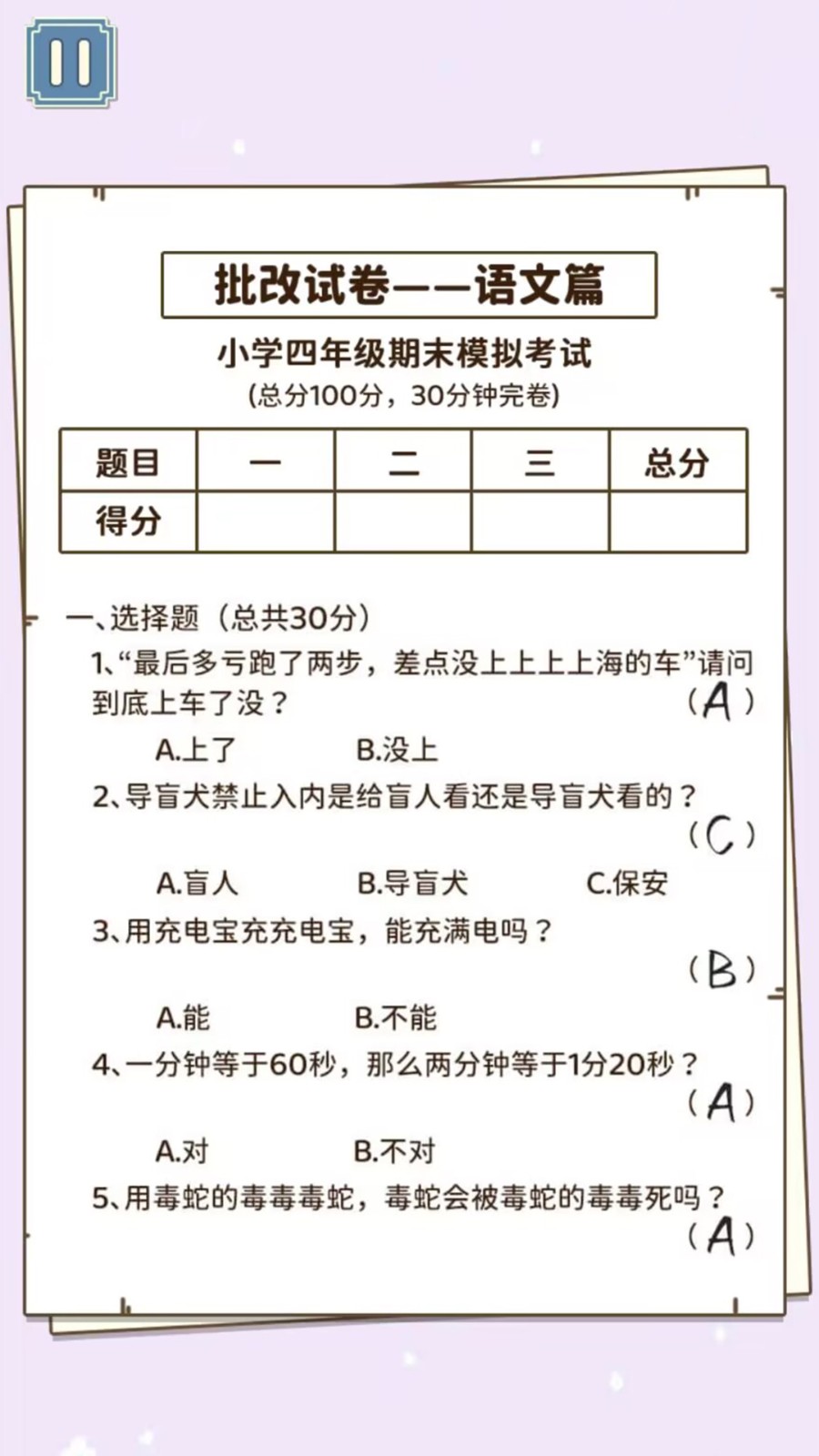 同学是学霸是轻松好玩的休闲益智游戏,玩家将化身一名老师对各种各样的试卷进行批改,找出试卷中的错误,非常考验玩家的观察力,还有丰富的关卡等你体验,每个关卡都有不同的难度,大大提升了游戏的趣味性,游戏操作简单易上手,适合各个年龄段玩家。
