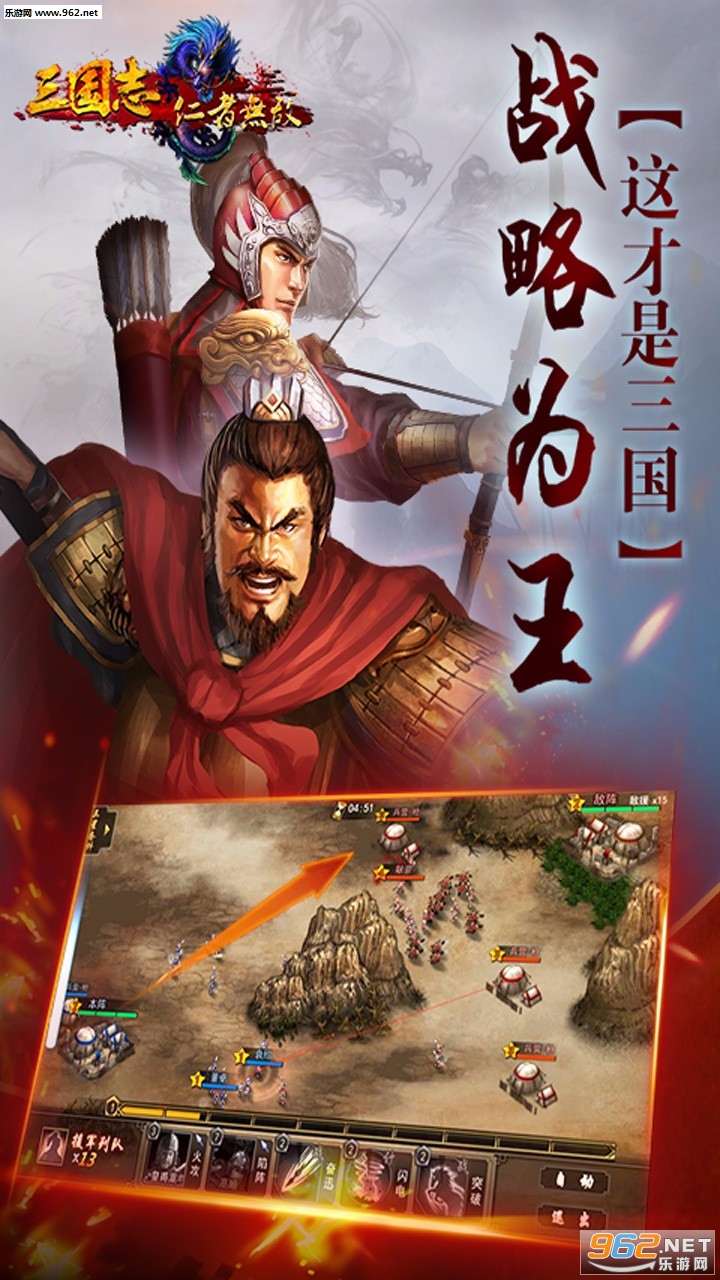 《三国志-仁者无敌》是一款策略竞技性很强的三国类手机游戏。该游戏绝不再是无脑的数值PK+特效回放,而是拼脑子、拼操作、拼运气,玩法趣味十足的竞技性手游。