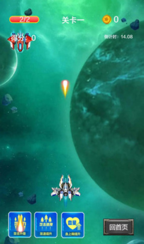 2.点击屏幕发射子弹,灵活操控飞机,摧毁来袭的敌机,躲避敌方的子弹和攻击。