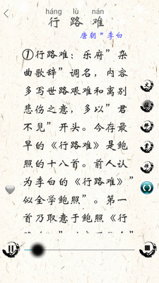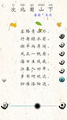 2、悟诗情:自带语音朗诵,帮助孩子浸入诗歌情境,把握诗词古文节奏。