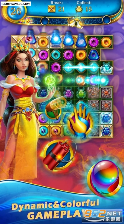 一款休闲消除类游戏,在游戏中,玩家通过点击屏幕互换珠宝的位置来消除互相匹配的彩色宝石,在有限的时间内宝石消除的越多分数就越高,达到指定分数后还会有星星奖励,让玩家体验到浓浓的乐趣。