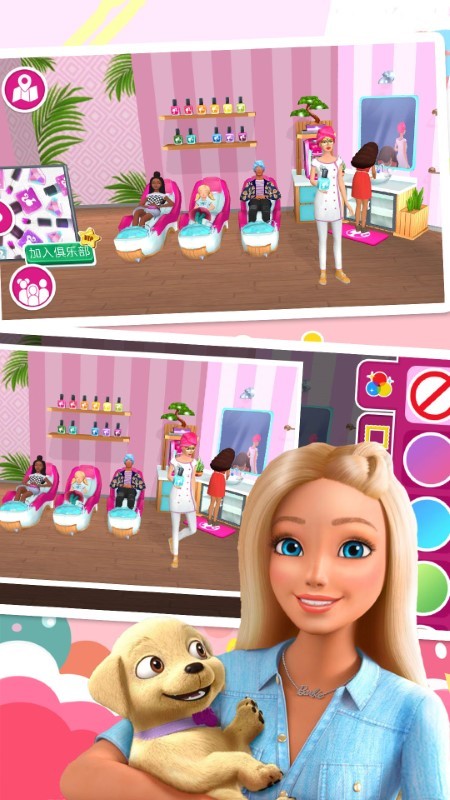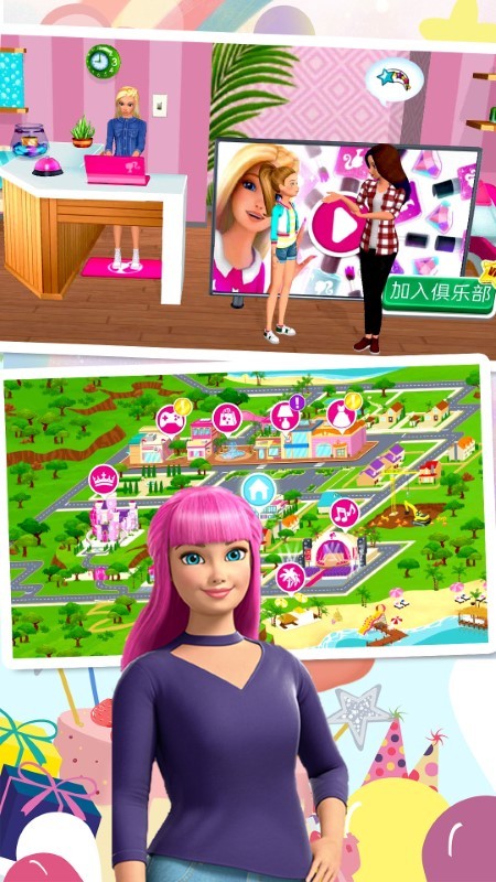 创建属于你自己的芭比魔幻花园体验!你可以设计每个房间。来认识我的死党、狗狗和爱丽莎!快来参加梦幻屋里的各式有趣活动:烘焙、跳舞或经典的泳池派对!乘坐我的粉红色敞篷车,出发探索马里布,寻找更多趣味活动。另外,请帮我和我的朋友们打扮得时髦出彩,拍出美美的照片!跟随我们踏上刺激的梦幻屋大冒险,体验一切皆有可能!