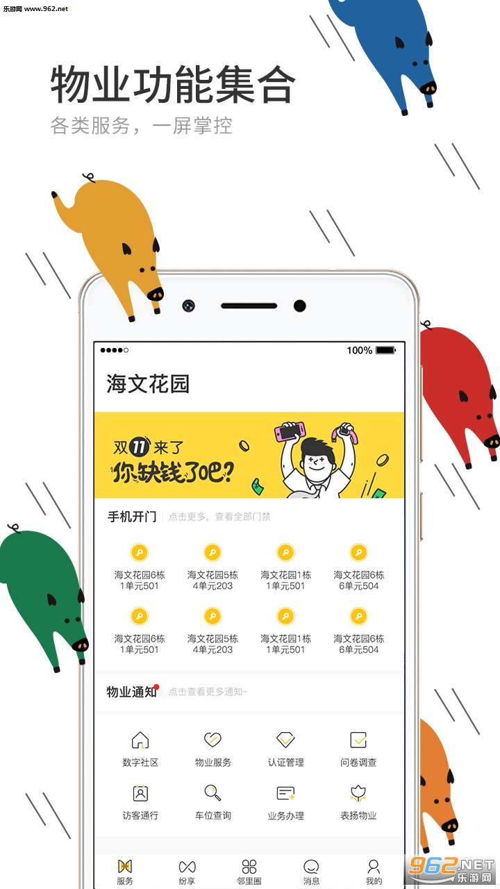 物业服务:实时掌握获取最新物业通知,在线申请室内维修,清洁绿化等物业服务,服务不好给差评!