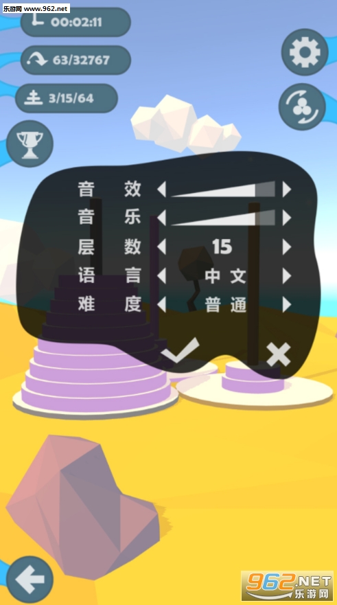 在游戏中,玩家需要将秤砣从大到小移动到另一个木棍上,剩余的一根木棍用于调动,发挥出自己的空间思考能力与调配能力,让游戏变得轻松有趣。