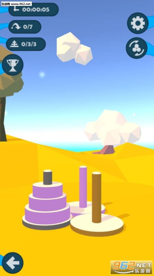 《汉诺塔Tower of Hanoi游戏安卓版》是一款很不错的休闲闯关游戏,画风设计的非常简单但玩法新颖,玩家在游戏中需要将三根金刚石柱子从一根柱子上慢慢变成64片黄金圆盘,听起来就非常的难以完成,喜欢挑战的小伙伴可以下载试试!