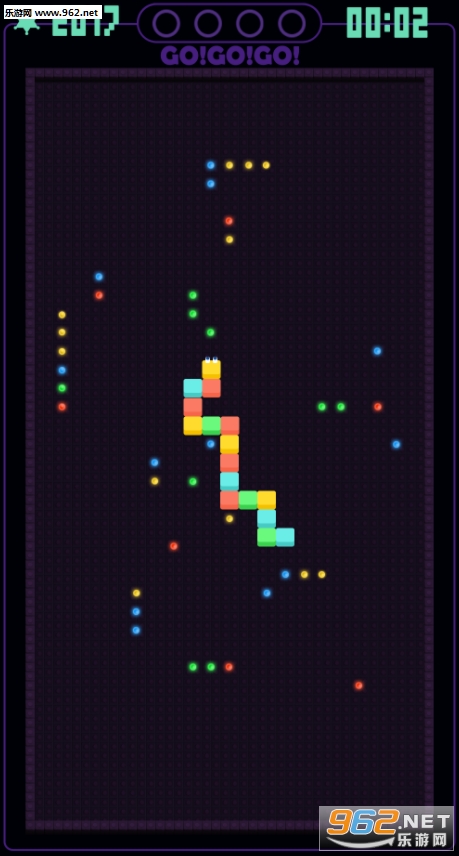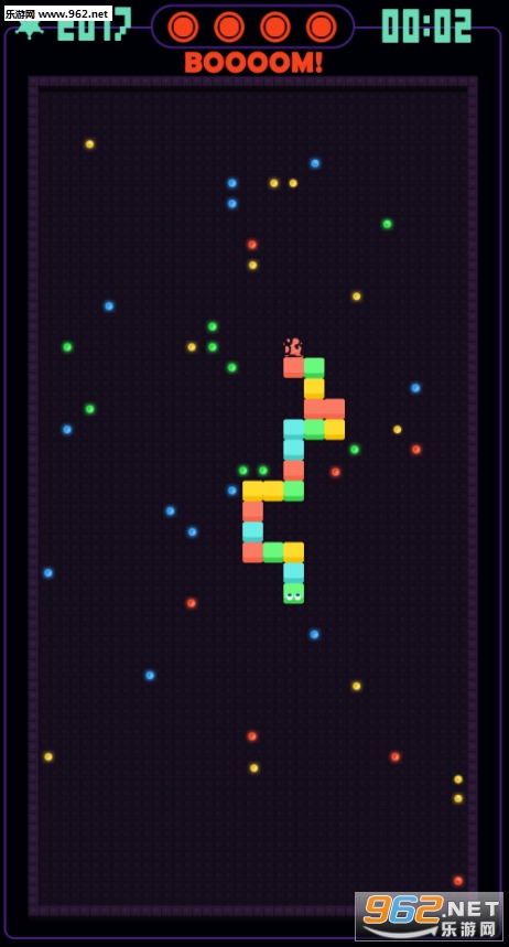 在游戏中,玩家扮演着一只小蛇,你需要在规定的时间之内完成目标分数,你就能继续的玩下去,连续吃掉四个相同颜色的豆豆会获得不同的能力,快来试试自己能走多远。
