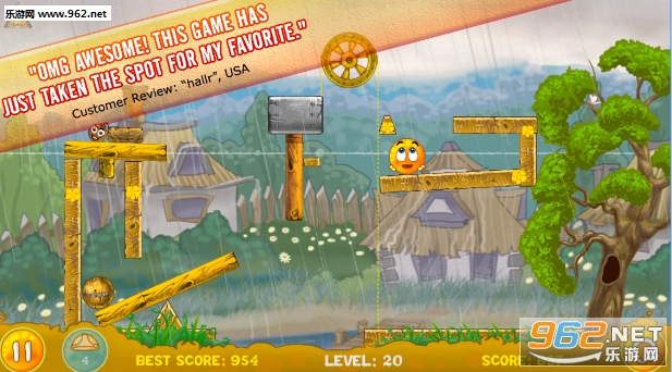一款休闲益智类游戏,在游戏中,玩家需要帮助小橘子躲在安全的地方,利用合理的安排箱子和圆筒的降落位置,让小橘子躲避危险的酸雨。