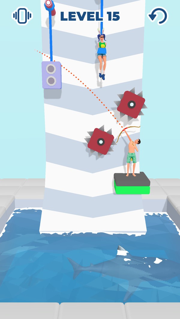 2.注意绳子摇摆出来的轨迹,瞅准最合适的时间点,让小人安全落地吧。