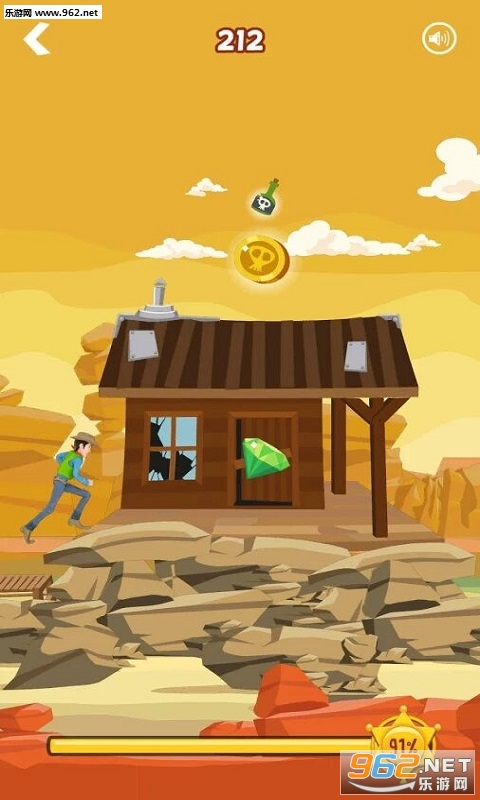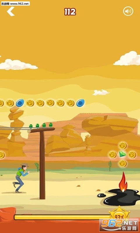 喜欢冒险与挑战吗?那么不妨来试试这款游戏吧!在游戏中玩家将扮演一名西部牛仔在西部的荒野上不断的奔跑,越过栅栏、仙人掌,搜集在道路上出现的宝石、金币。使用这些宝石和金币打开西部荒野上潜藏的种种秘密!并且游戏需要较高的反应与速度,只有这样你才有可能挑战成功哦,一起来试试吧!