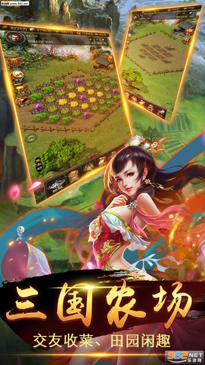《乾坤霸业手游》是一款热血三国手游巨作,游戏休闲玩法多彩多样,除了和兄弟一起征战沙场,还有农场玩法助你休养生息,和朋友互赠礼物,一起打理农场,聊聊天,叙叙旧,出城一起打神兽!感兴趣就快来下载吧!