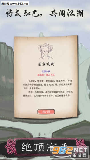 《所谓侠客测试版》是一款经典武侠放置挂机类手游,与你熟悉的江湖有何不同呢?学习各种绝世武功秘籍,修仙绝技,与各大英雄线上对决,虽然是文字游戏,但是你熟悉的武侠元素也不缺少,还带着怀旧的中国水墨画元素。
