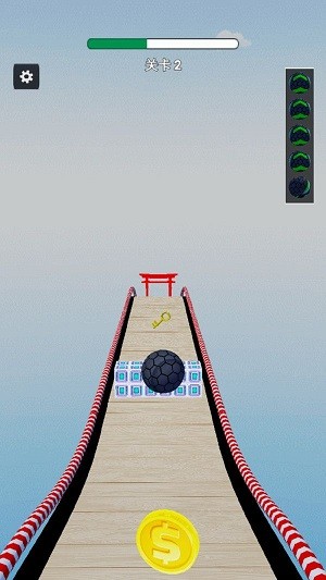 3、收集赛道上的道具和奖励,增强小球能力和分数。
