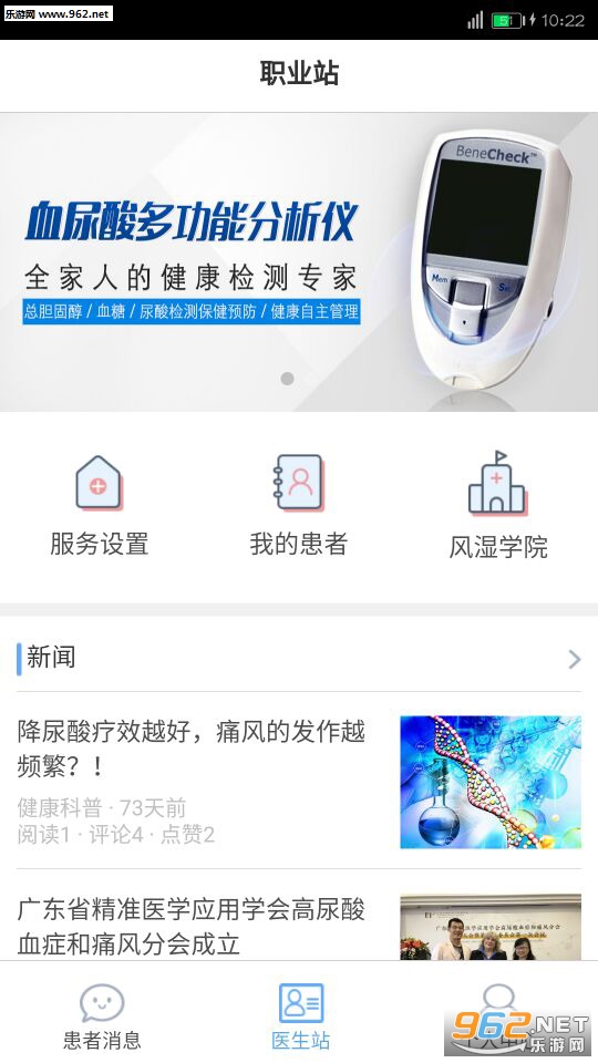 风湿学院包含丰富的课程学习资源。即时通讯方便医生患者的沟通交流。预警提示随时关注患者病情。助你轻松行医