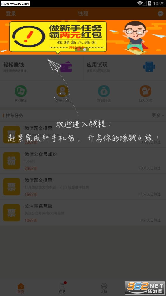 钱程是一款专为学生、上班族、宝妈等手机用户打造的社交型兼职赚钱平台。目前已超过100万用户,你只需利用闲暇的时间做做简单的小任务,就能获得丰厚的佣金,支持提现到支付宝,也可以充值Q币、话费、流量等。