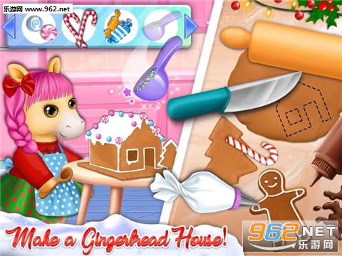 家庭圣诞儿童游戏。小马姐妹一家需要您的帮助来准备圣诞节。烘烤饼干,装饰房子,唱著名的圣诞歌曲并制作可爱的冬季节日服装,与小马姐妹一家一起为一年中最神奇的圣诞节日做准备。游戏画面、玩法、操作等方面,都很适合孩子的娱乐。