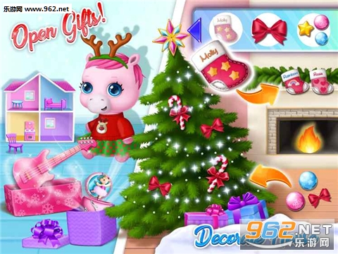 装饰圣诞树,与小马姐妹一起在壁炉边,许个愿!