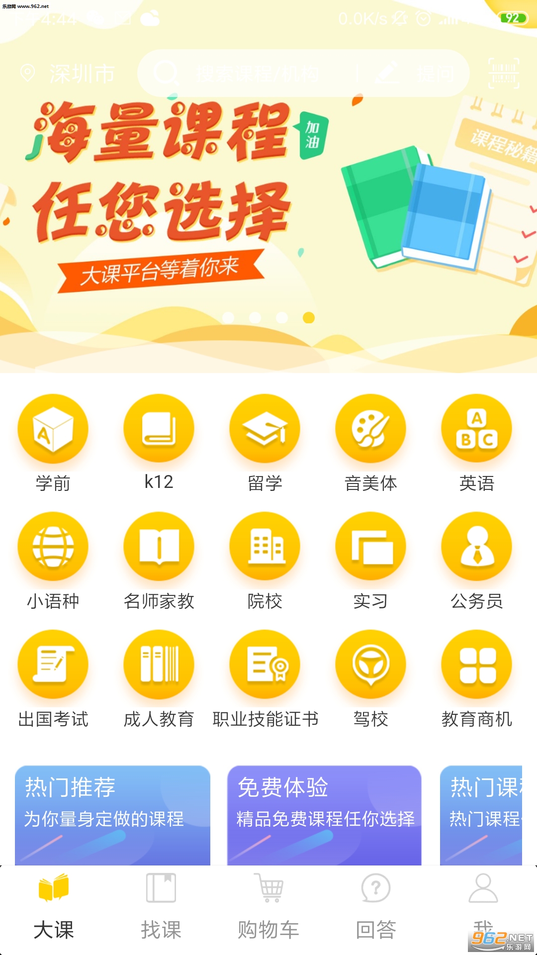大课教育点评软件是集各类教学资源,院校机构,学生、家长、老师于一体的教育类综合信息平台。院校、机构入驻发布一手教学资源,个人用户可在线浏览,购买相关课程。