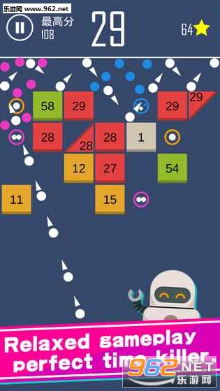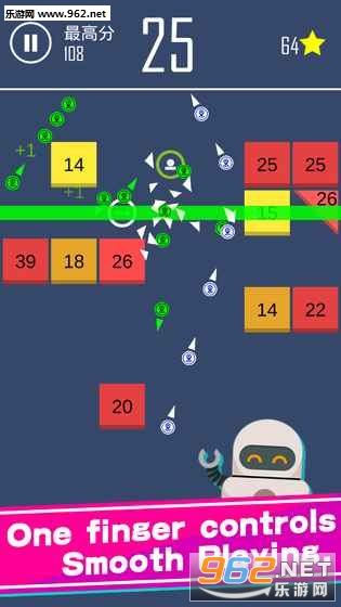 全新的打砖块玩法。按住和瞄准,然后发射小球,击碎上方的砖块。不同的,每一回合,砖块便会下降一层。因此玩家必须在砖块落下之前,击碎所有的砖块。游戏上手简单,丰富的道具,千变万化的关卡,挑战性十足。极易上瘾的玩法,非常适合打发时间!