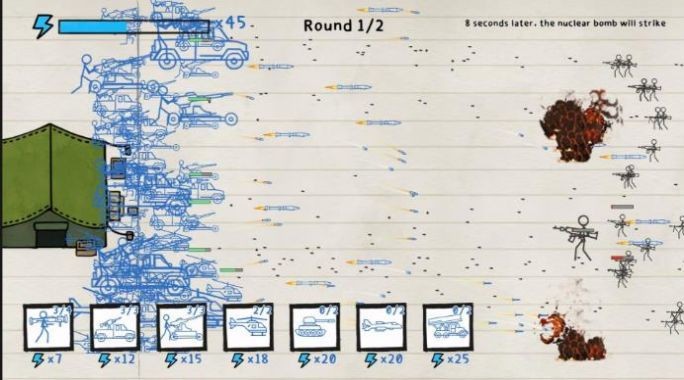 3、纸上战争风格: 游戏以简笔画风格呈现,独特的纸上战争场景让人眼前一亮。