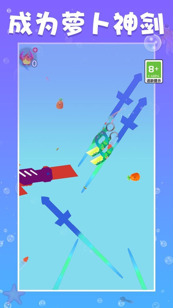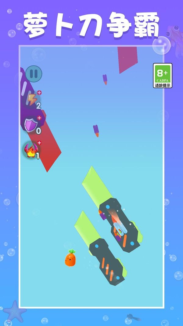 1、操控你的萝卜刀一路进阶,可以消灭更多的对手,角逐到最后。