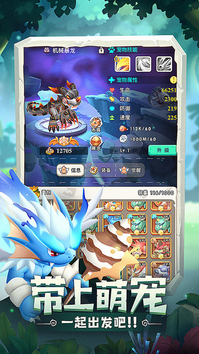 在《兽兽军团》中,游戏提供了战士、骑士、盗贼、法师、牧师、小德等多种职业的英雄供玩家选择,在角色养成的设置上也非常丰富,进化、升级、进阶、技能,多线养成,
