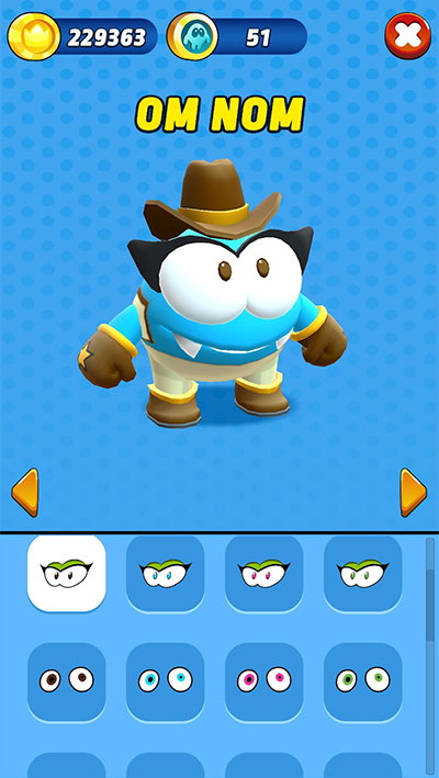 3、引入来自《Cut the Rope》宇宙的新角色:Om Nom和Om Nelle是本游戏的头号巨星没错,不过还有更多酷炫角色和帅气服装等你来解锁!