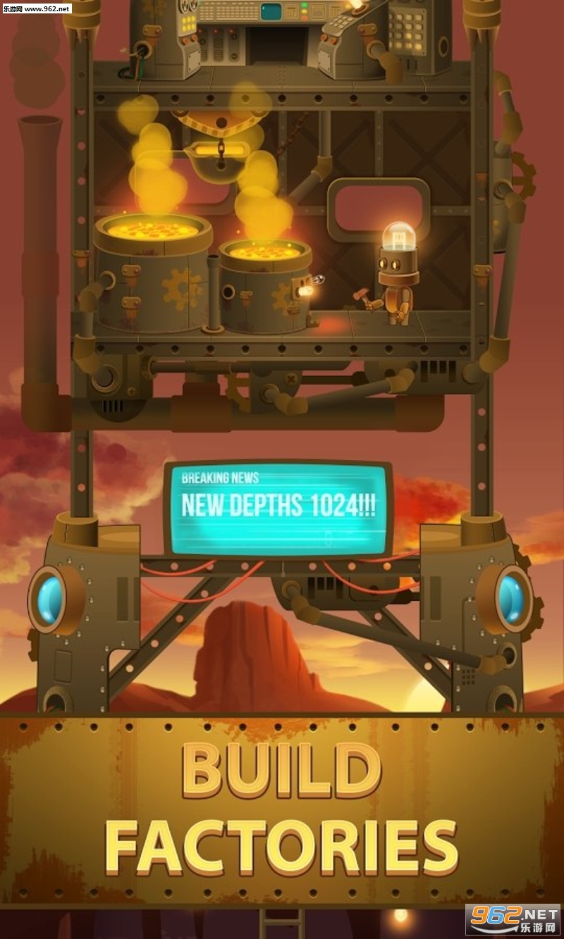 深城游戏是安卓手机上一款带有机械蒸汽风格的点击类游戏,你要不断点击触摸屏幕中的地面来向下挖深,控制角色一步步深入地底勘探。最终目的是探索地底深处、建造工程以及搜集矿物。