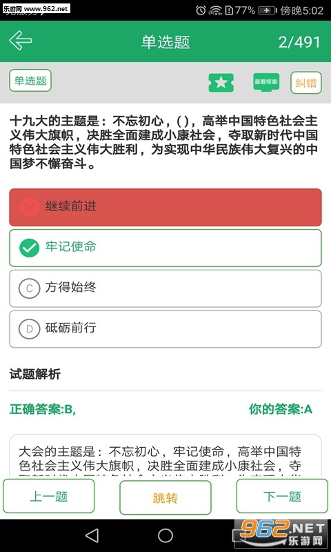 本软件为十九大题库的软件,800道试题含答案详解,包含十九大600道,十九大党章200道。十九大相关的共计800多道。