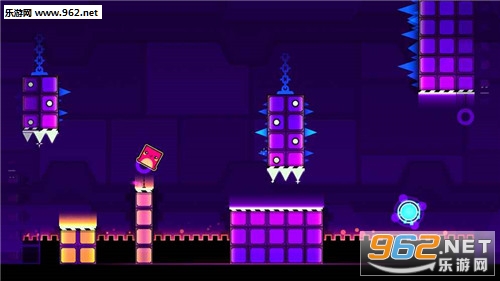 游戏玩法很简单,通过触碰屏幕让不断前进的方块进行跳跃来躲避沿途的障碍物最终到达终点。