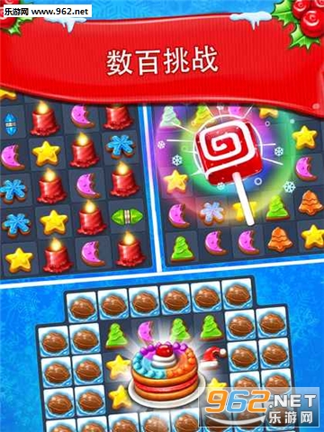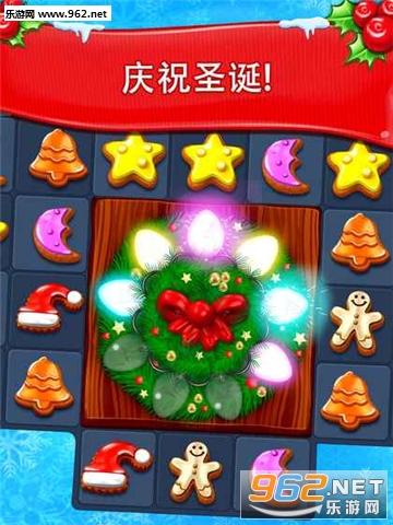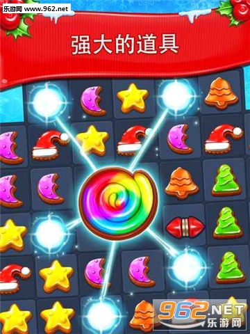 《圣诞饼干(Christmas cookie)》提供各种道具组合,将三消游戏提升到一个新的级别。打开礼盒,融化掉讨厌的雪人、打破圣诞袜等等!消掉更多饼干可制造圣诞饰品、箭头方块及一些其他道具,每个道具都能一次消掉大量饼干,超有感觉!