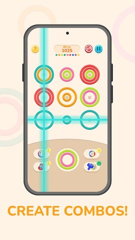 2.一旦你在垂直、水平或对角线上填充相同颜色的戒指,它们就会消失,为新戒指腾出空间。