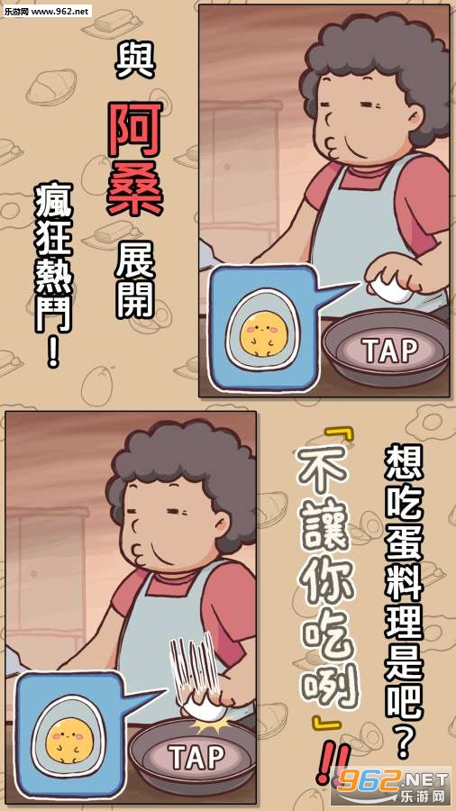 画风清新诙谐的趣味日式休闲点击类游戏,考验玩家的快速反应能力,玩家需要将蛋壳坚持四次,最终做出美味的料理,一旦点击次数过多,妈妈也会生气,后果不堪设想哦!可爱的画风治愈系的操作玩法,休闲简单的愉快时光!