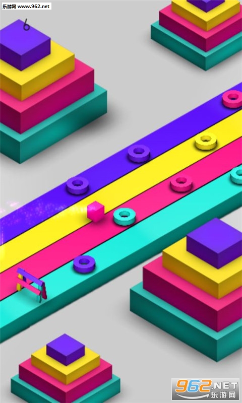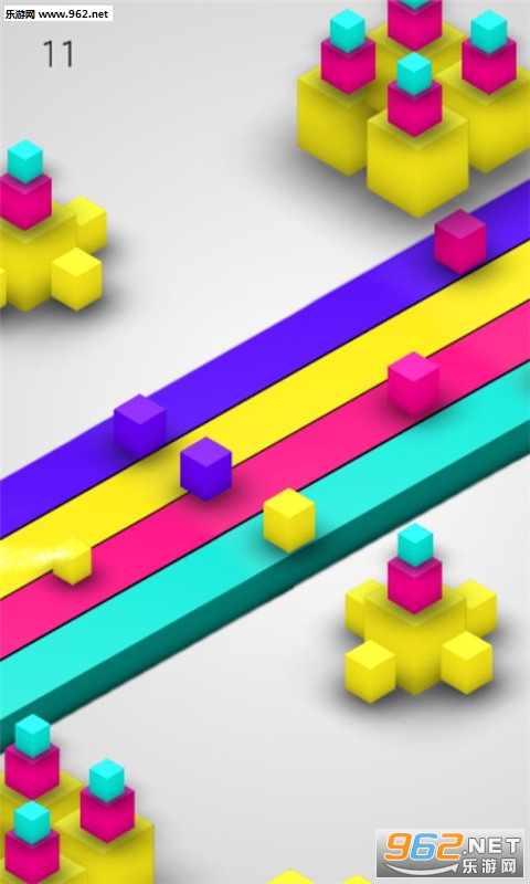 游戏的玩法是比较简单的,玩家需要通过手指触摸屏幕来控制方块来躲避各种障碍,然后在通过每一个魔方的时候,都会随机改变方块的颜色,然后选择相同颜色的方块躲避障碍即可!而且在游戏中还有无尽的挑战模式在等待着各位哦!