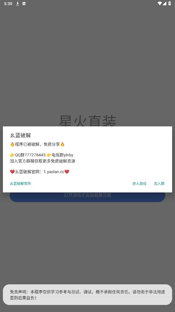 弹出幺蓝破解弹窗,点击进入游戏