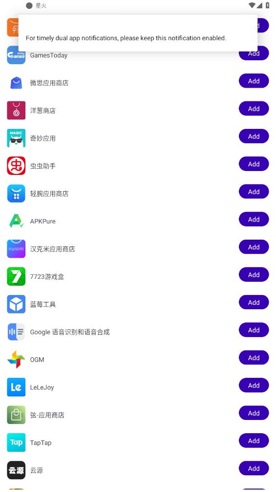 选择要添加的app