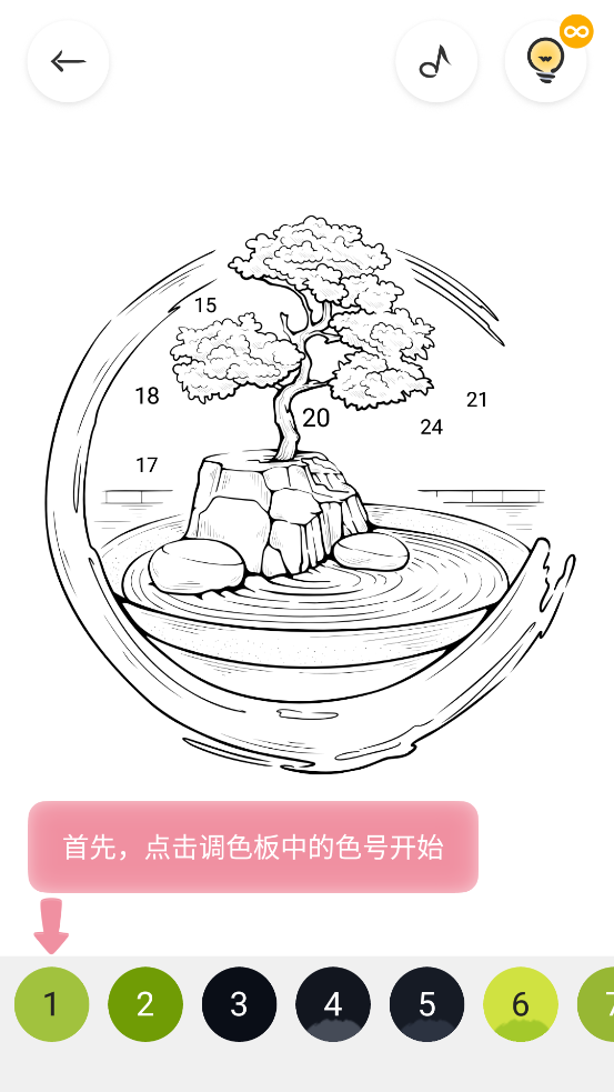 点击下方数字会提示填色的地方,全部填上,然后再次选择一个数字去填色