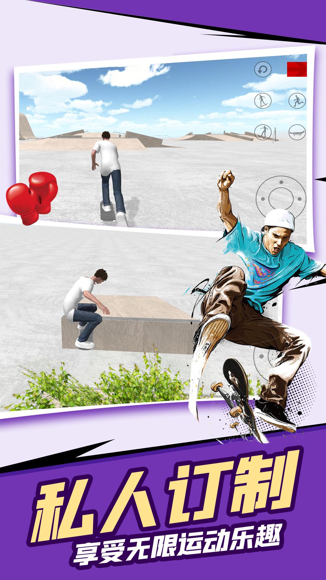 1、触摸式的虚拟控件给予你极佳的感受,购买自己所喜欢的各种滑板参与比赛竞技;