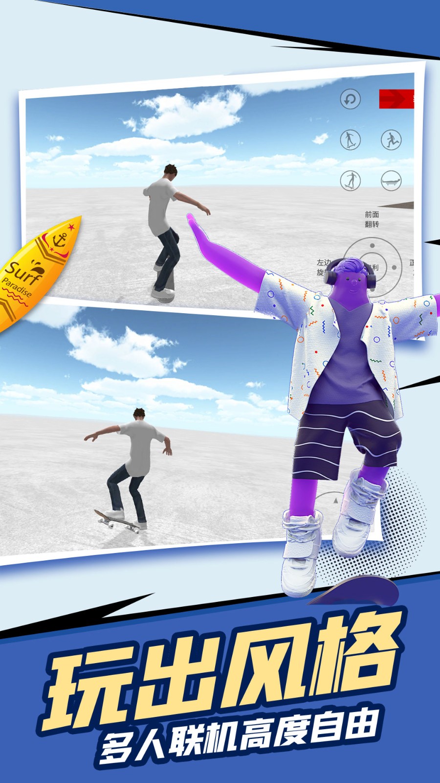 3、玩法充满乐趣,极致畅快的操作手法,学习更多的技巧,成为顶级滑板高手。