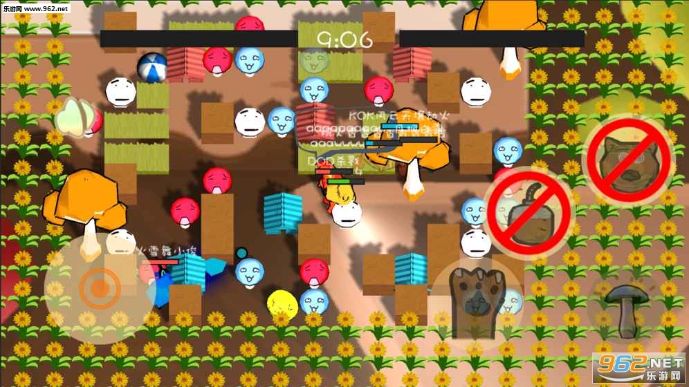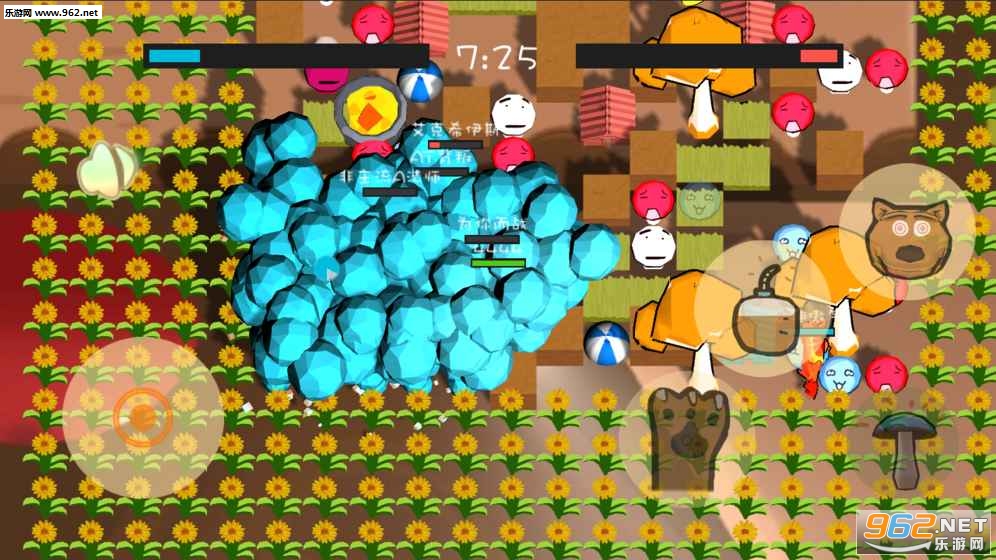 这是一场红蓝蘑菇之间的斗争,利用蓝蘑菇来围住红蘑菇,产生的爆炸会获得相应的分数,通过击杀对手来获得更多的蓝蘑菇,这是一场斗智斗勇的舞台。