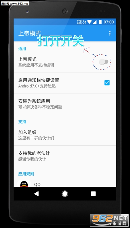 (之前的版本采用的是ContentProvider模式所以每次被编辑的app都需要向上帝读取规则信息而这个版本采用的是INotify机制所以上帝运不运行就不重要了上帝客户端主要用来管理规则 注意现在没事不要清除上帝数据!!!)