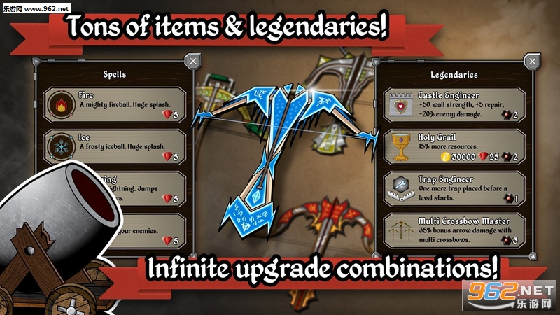 通过无休止的水平和不同的游戏模式具有挑战性的游戏。工艺和定制你的防守,只要你喜欢。非线性国防和升级设置,几百个可行的基础之上。自由组合项目,以建立最强的防守,放置炸药,雷击或停滞的陷阱摧毁你的敌人或迷宫起来使用栅栏。用火,冰,闪电或推回法术以及强大的弓弩与模块相结合,阻止黑暗的怪物。升级你的弓射更强的箭头,提高你的模块来处理更多的伤害,使用连拍或有splintershot。升级城墙,购买更多的炮塔防御和魔法塔,甚至自动炮塔添加到您的城堡!