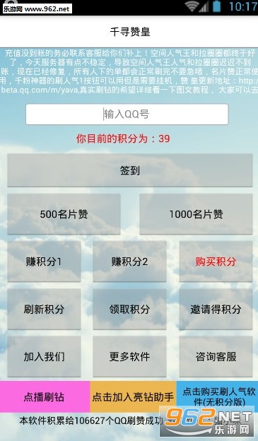 千寻赞帝无限积分版下载,无限积分内购破解,快来下载吧。这里有500-7200的点赞,需要就来下载看看吧。输入QQ号下账单就可以了,还支持哦!