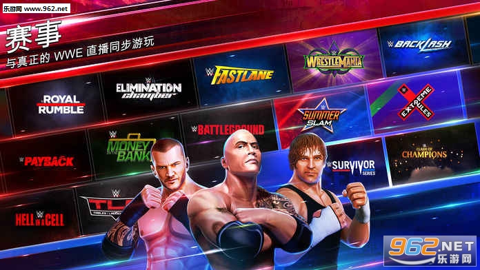 打造自己的WWE超级巨星名册,与其他冠军加入双打对决吧。游玩与真实WWE直播同步的动作赛事,例如MondayNightRAW,SmackDownLive,ClashofChampionsPPV以及每月赛事。