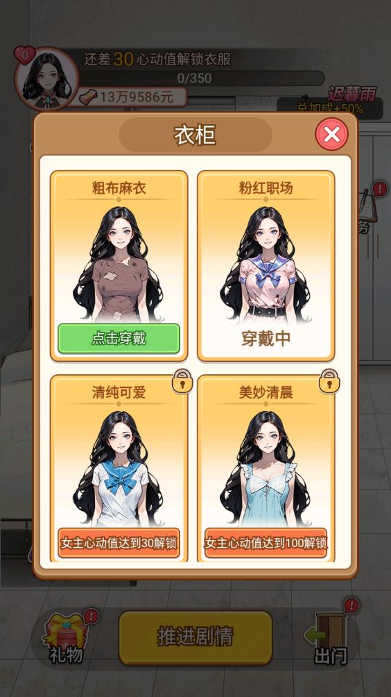 出门可以赚钱,完成任务和挑战,解锁汽车等等,不断发家致富,带上女主过上幸福生活