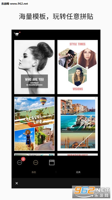 杂志风拼图:选用精彩的内置杂志模板进行拼图。